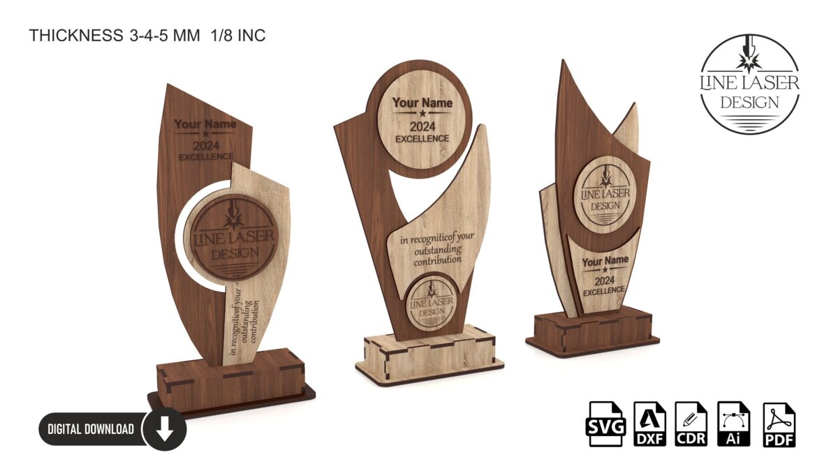 Paquete de Archivos SVG de Trofeos para Corte Láser – 3 Diseños Exclusivos para Premios