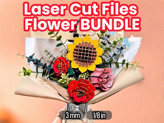 Paquete de archivos SVG de flores 3D cortadas con láser: rosas, girasoles y camelias