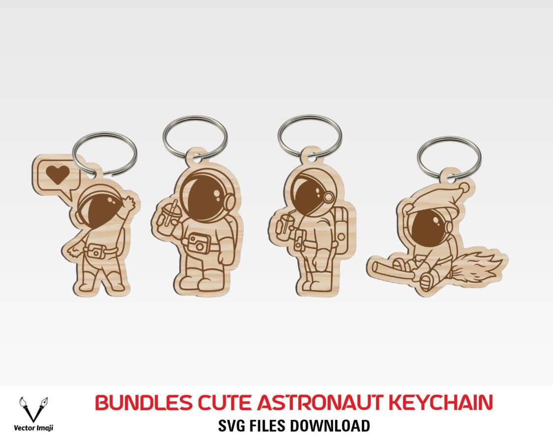 Paquete de archivos SVG de llavero espacial y astronauta para corte láser Glowforge
