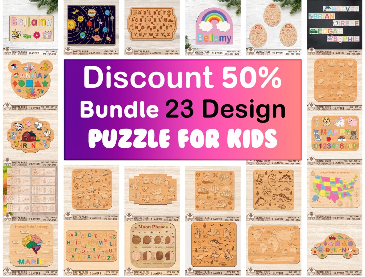 🧩 ¡Crea momentos inolvidables con nuestro paquete de archivos SVG de rompecabezas para corte láser DIY! Este kit de manualidades es perfecto para niños y te brinda la oportunidad de desarrollar tu creatividad de manera divertida. ✂️