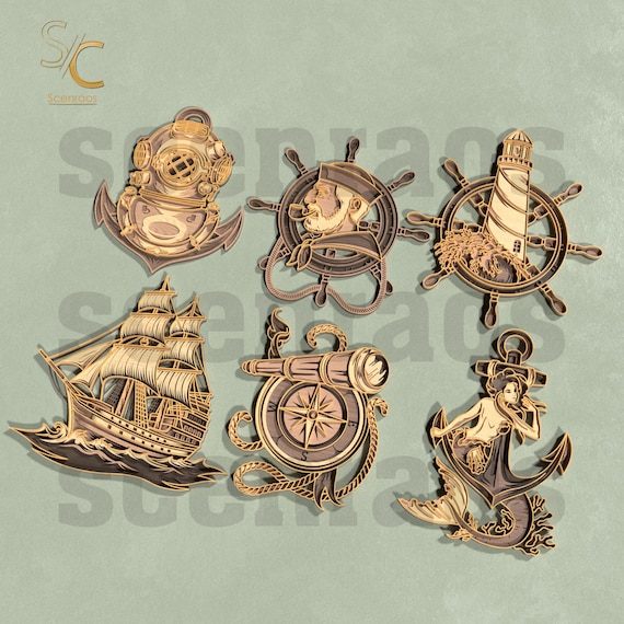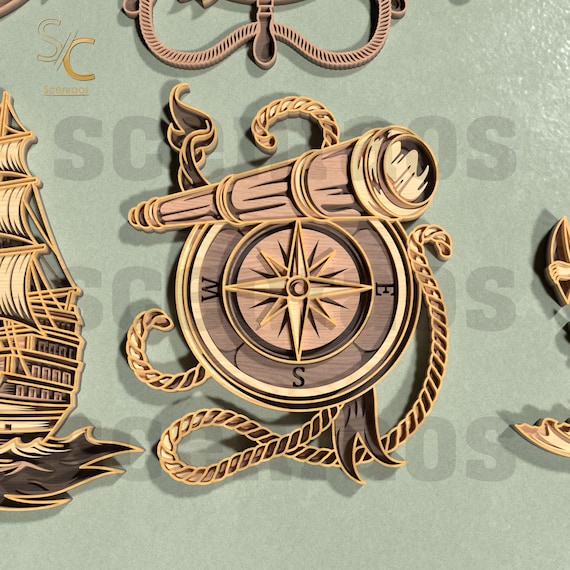 🚀 ¡Transforma tus proyectos con nuestro increíble paquete de archivos SVG náuticos para corte láser! Este conjunto incluye 6 diseños originales compatibles con Glowforge, perfectos para dar vida a tus ideas creativas. 👩🎨