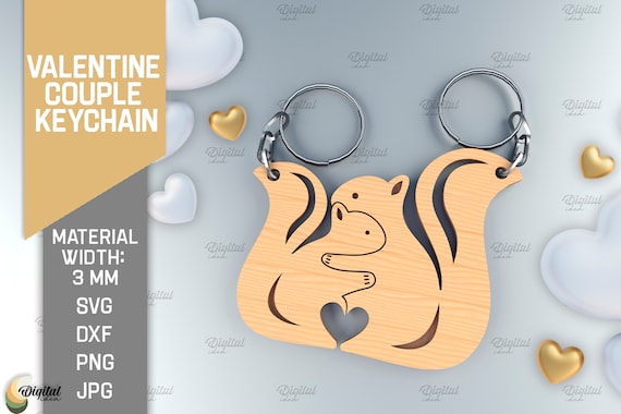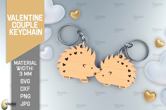 Llaveros de pareja cortados a láser para el Día de San Valentín | Regalo de aniversario y animales lindos SVG