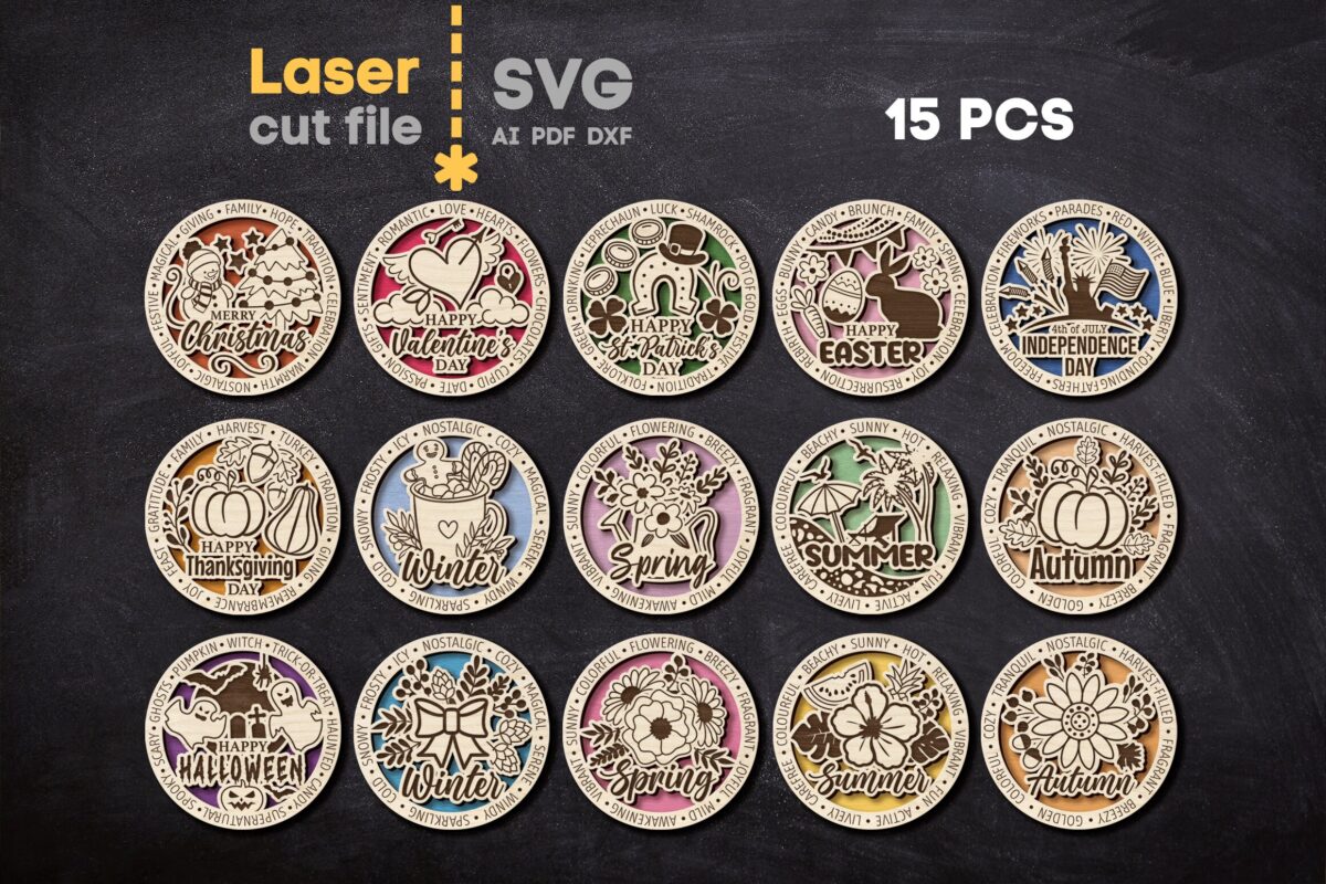 Paquete de llaveros SVG para corte láser: adornos navideños e intercambiables – Descarga instantánea
