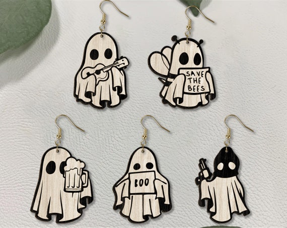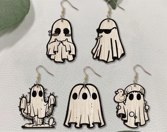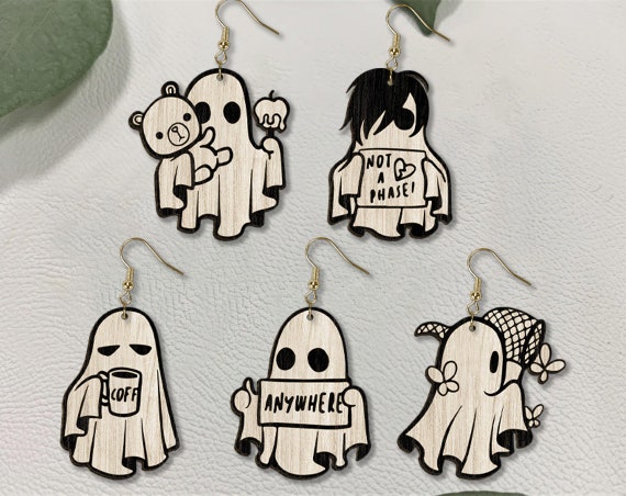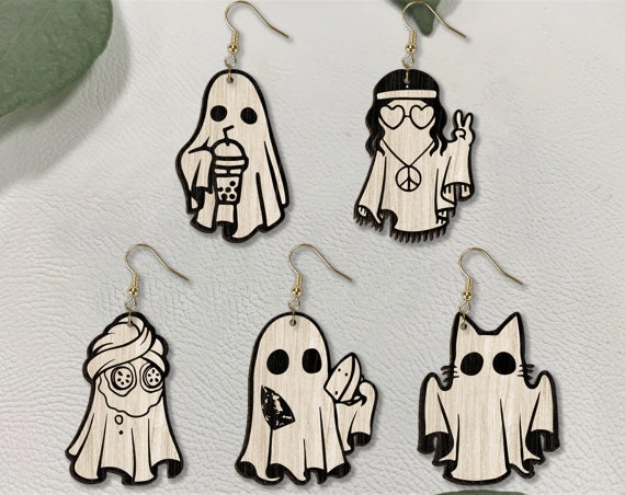 👻 ¡Luce unos pendientes de fantasmas únicos y espeluznantes para tus ocasiones especiales! Esta joyería de madera, cortada con láser, es perfecta para quienes buscan un estilo original y divertido.