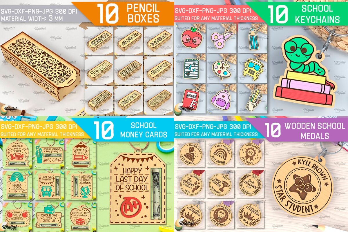 Paquete Mega de 140 Diseños SVG para Corte Láser Escolar – Regalos para Maestros y Decoraciones 3D