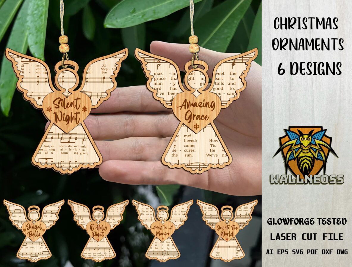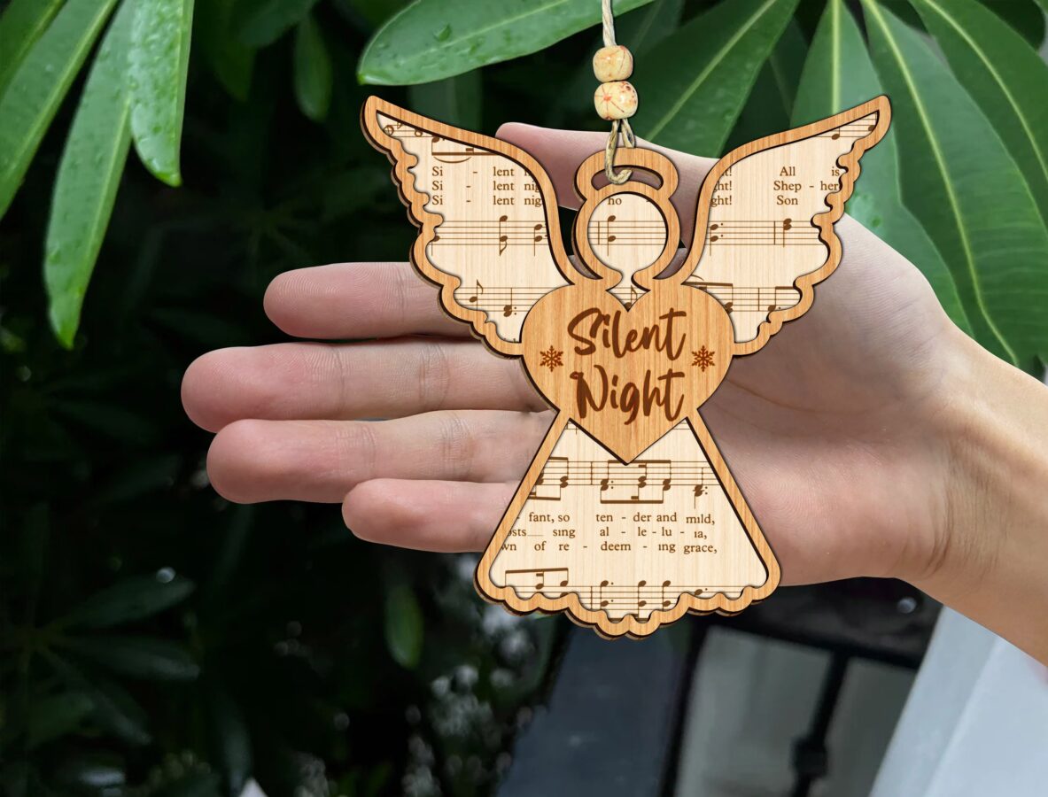 Paquete SVG de adornos navideños para corte láser – Estampas de ángel y partituras para decoraciones