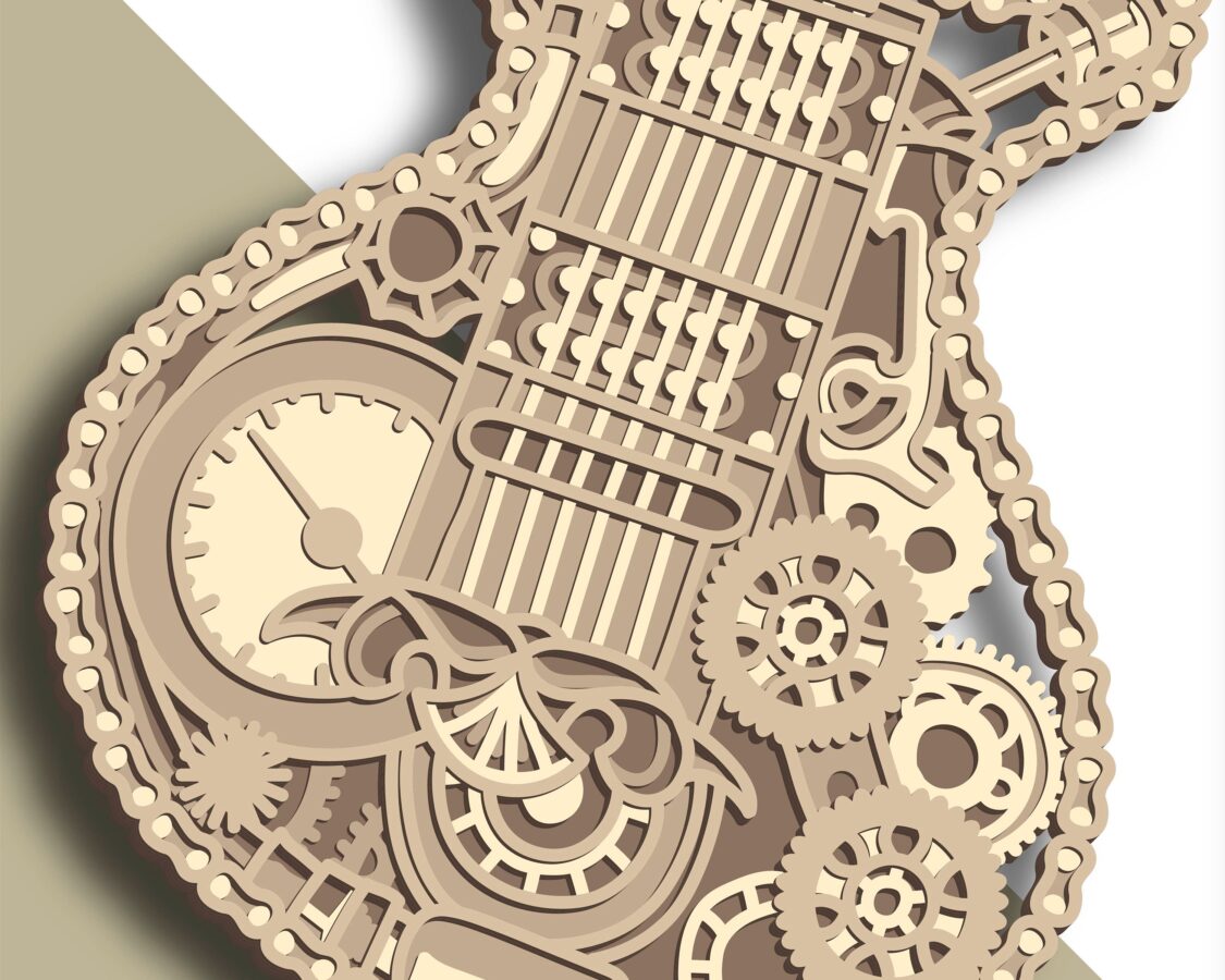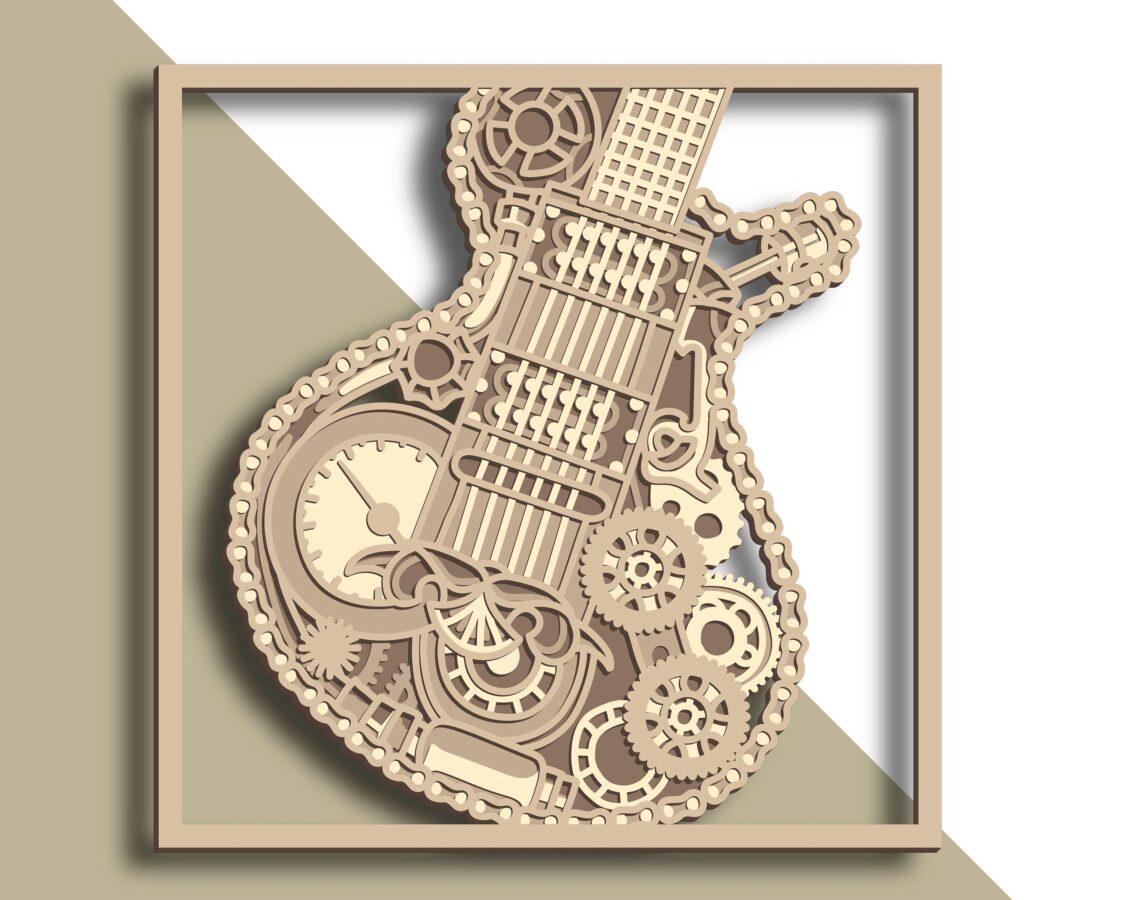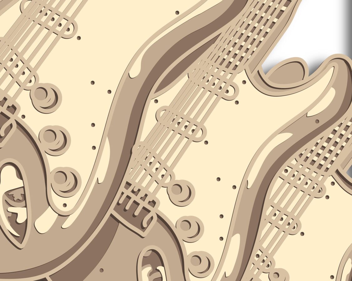 Paquete SVG de guitarra 3D para corte láser en madera contrachapada y papel – Diseño multicapa