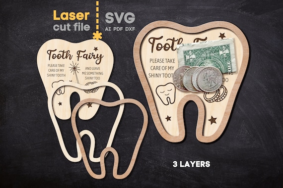 Paquete SVG Hada de los Dientes para Corte Láser – Caja para Niños, Colgante y Porta Dinero