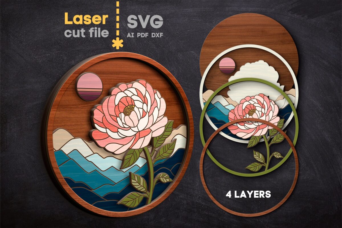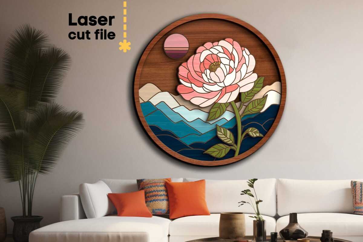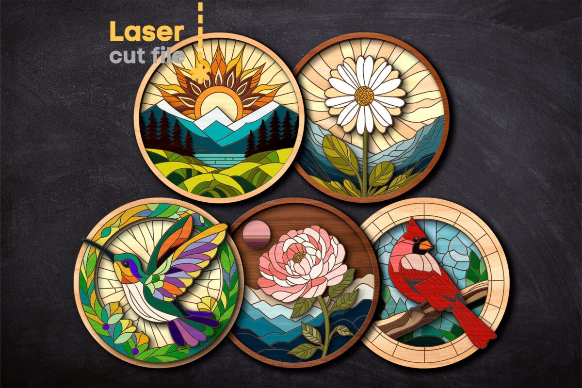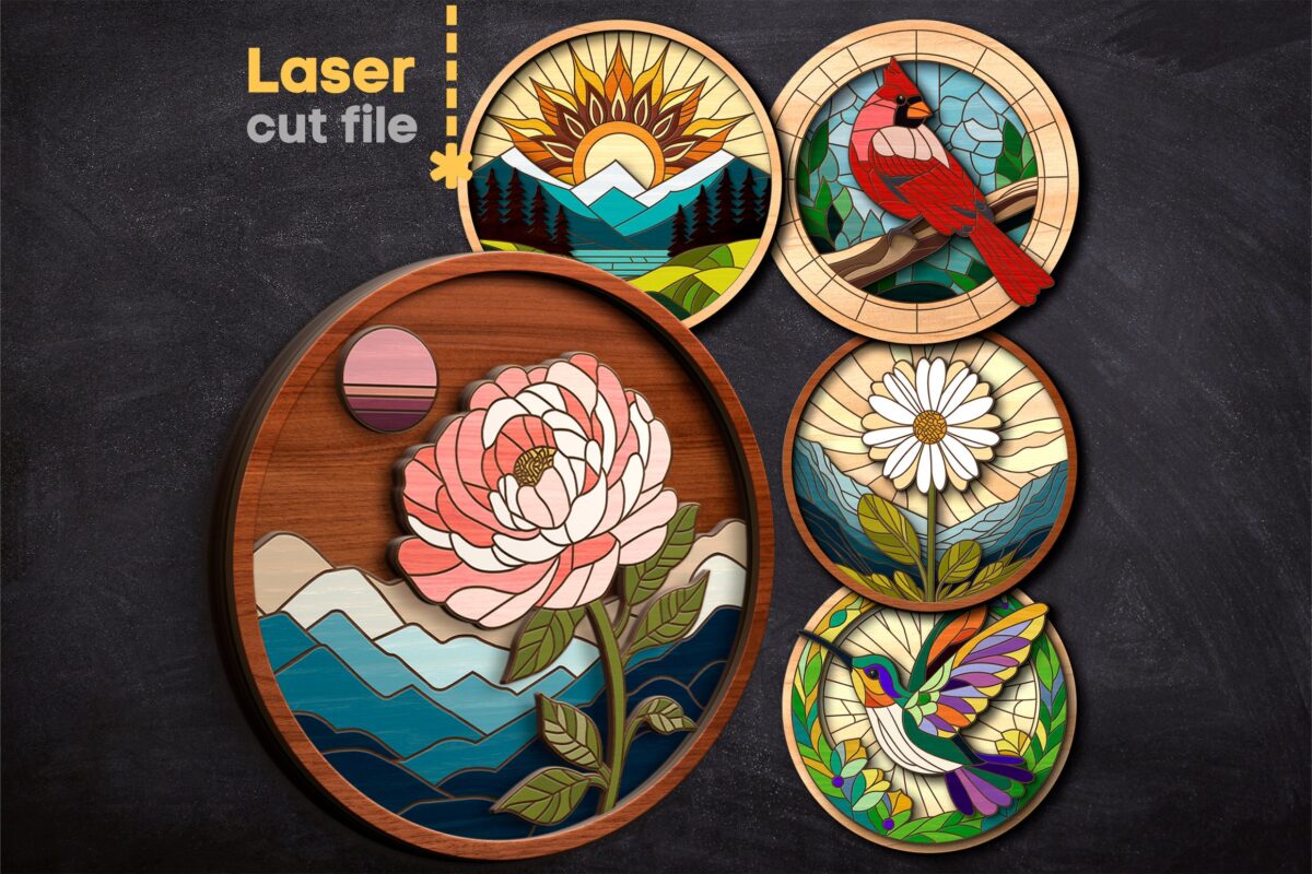 Paquete SVG Cortado por Láser de Naturaleza para Glowforge – Signo Redondo con Flores y Colibrí