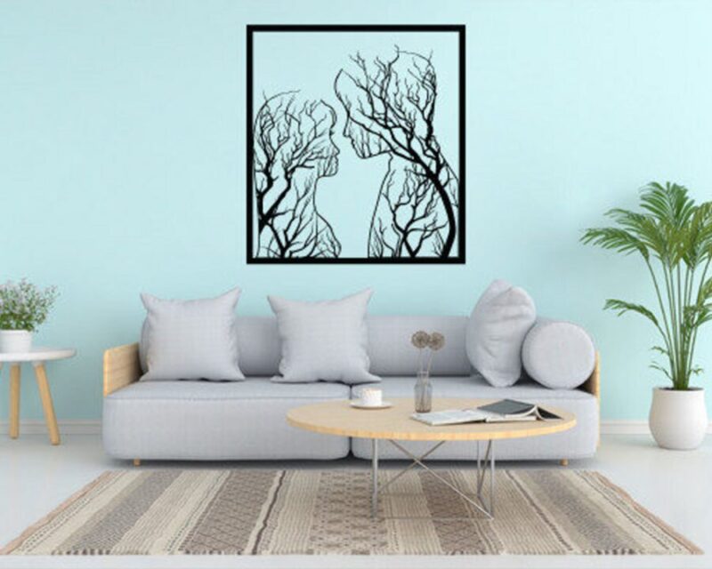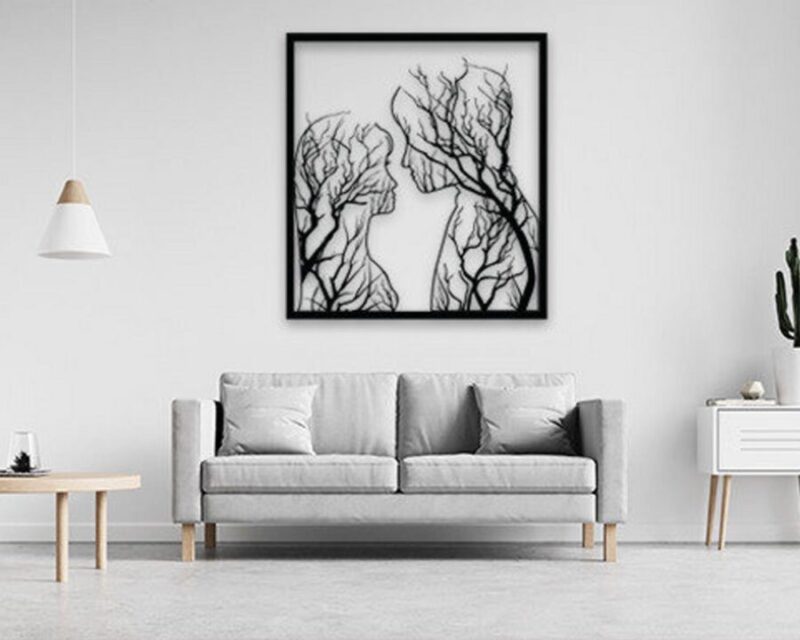 Cuadro para Corte Láser: Pareja Artesanal con Diseño de Ramas de Árbol Decorativas