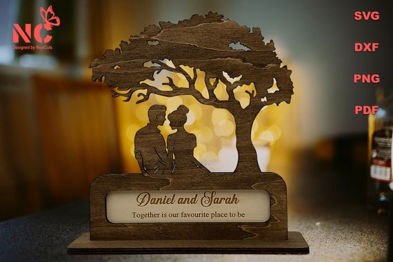 💖 ¡Embellece tu hogar con nuestra encantadora pareja romántica cortada en láser! Este diseño personalizado en formato SVG captura la esencia del amor, mostrando a una pareja sentada bajo la sombra de un árbol, creando un hermoso recordatorio de la conexión especial entre dos personas. 🌳✨
