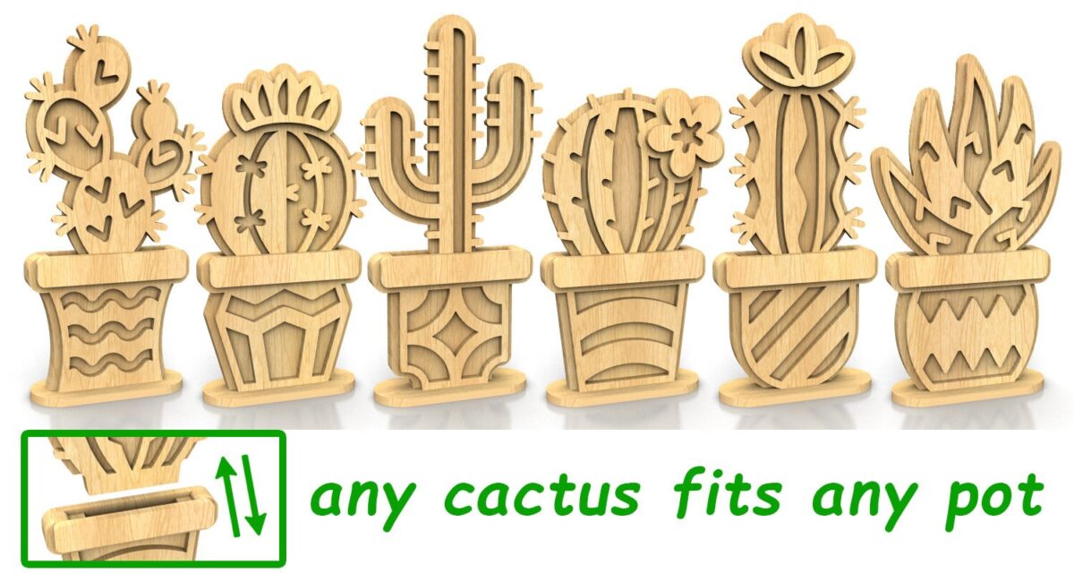 Patrón de Cactus para Corte Láser – Archivos PDF, DXF, SVG, EPS para Manualidades