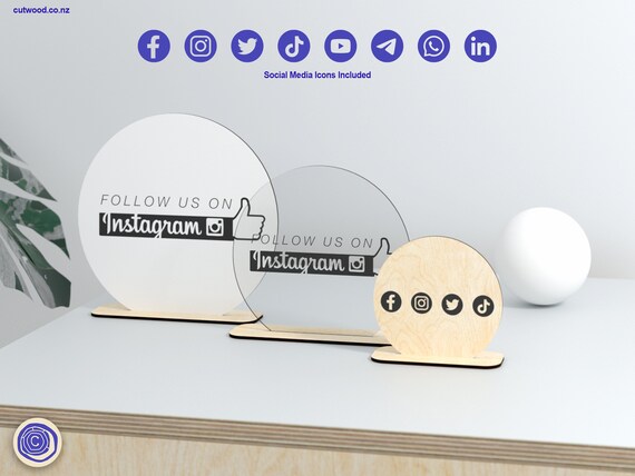 Placa Redonda de Redes Sociales – Archivo Corte Láser SVG – Soporte y Tamaños Personalizables