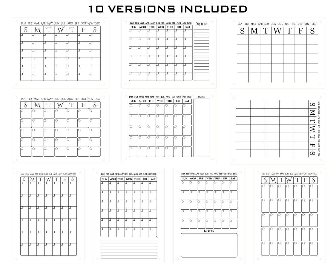 Planificadores Mensuales Digitales para Corte Láser | 10 Versiones SVG, EPS, PDF y Más