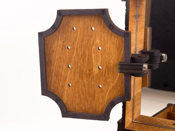 🛠 Además, incluye una guía de montaje detallada y una lista de materiales necesarios para que tu proceso sea sencillo y eficiente. Necesitarás una máquina de láser CO2, pegamento, madera contrachapada, 4 imanes, terciopelo, hoja de espejo acrílico, un marcador permanente, pintura para madera y un pincel de aplicación.