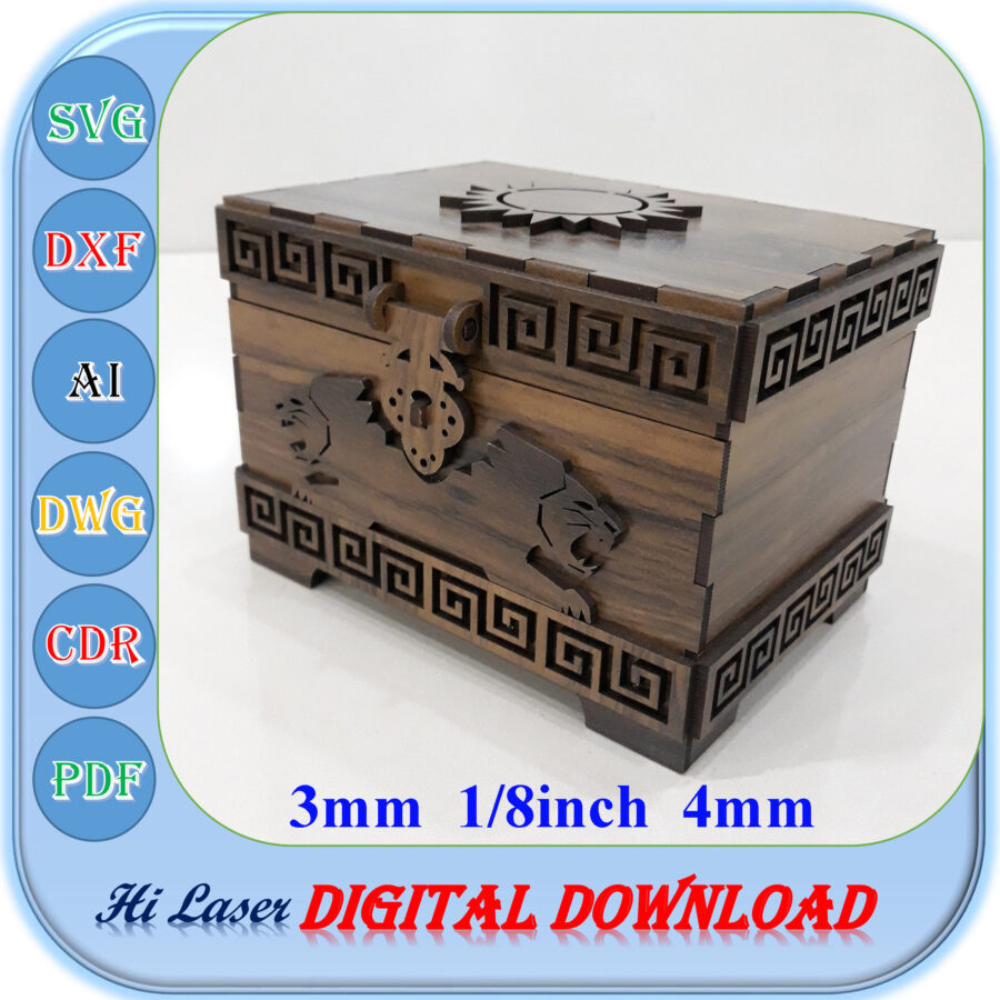 Plantilla de cofre del tesoro para corte láser – Caja de regalo SVG para joyería 3mm y 4mm