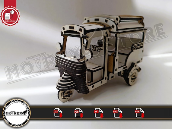 🏍️ ¡Transforma tu creatividad con nuestra plantilla de motocicleta Tuk Tuk para corte láser!