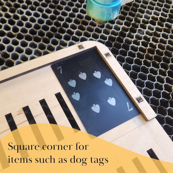 - Esquina cuadrada: Mantiene en su lugar artículos más pequeños como placas de identificación para perros.
