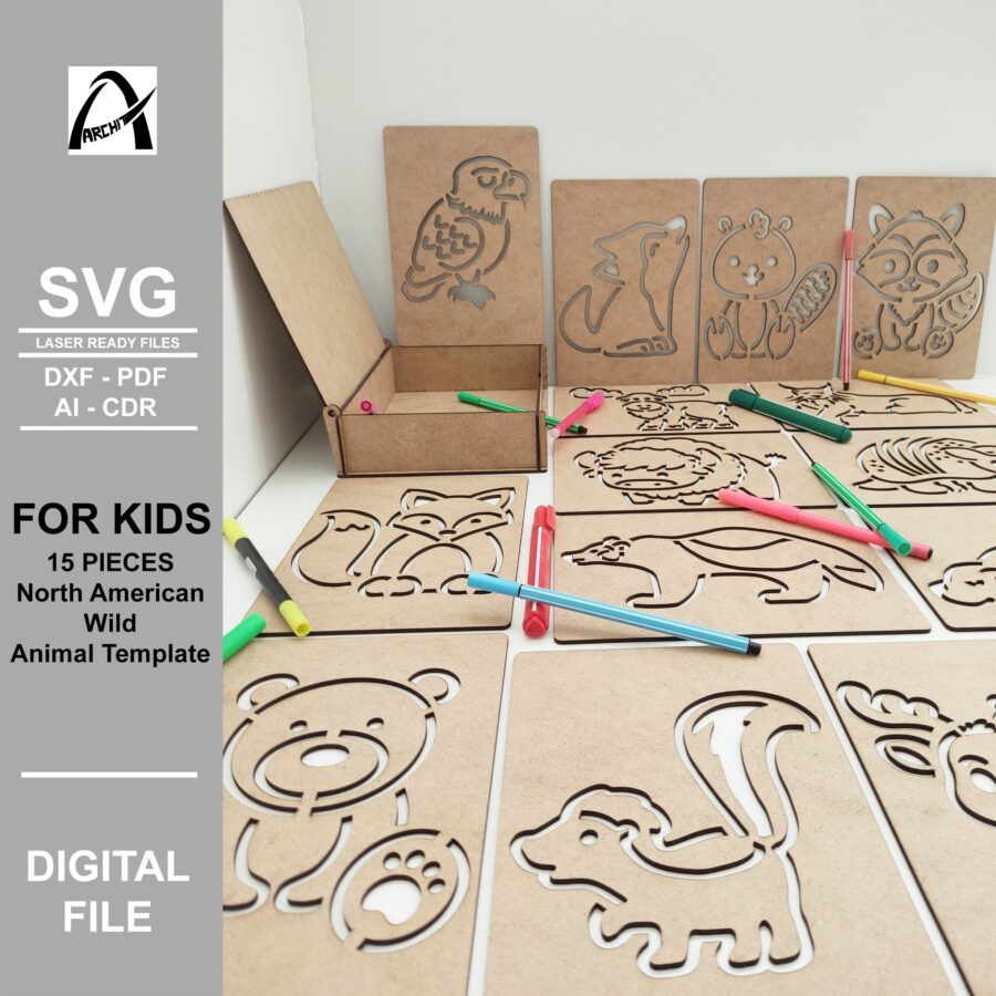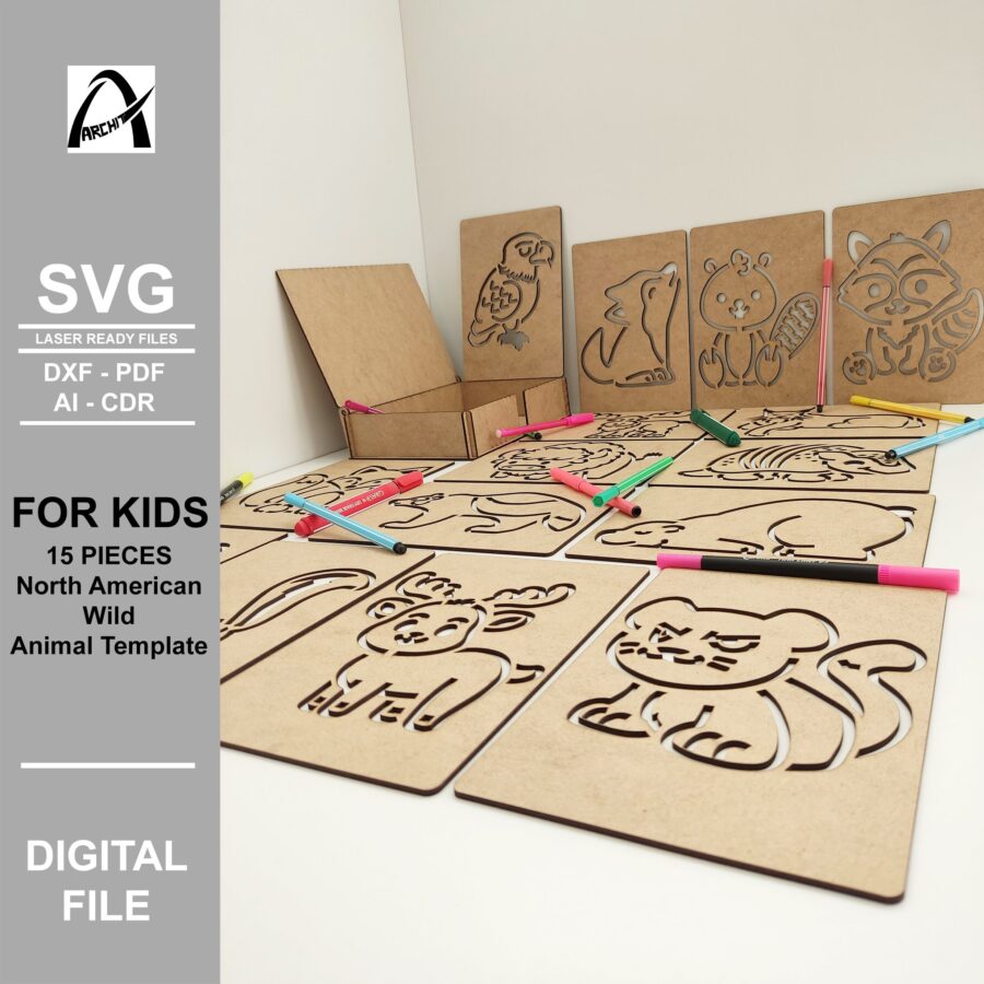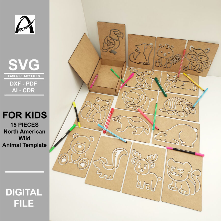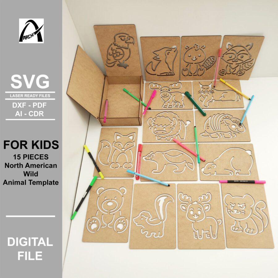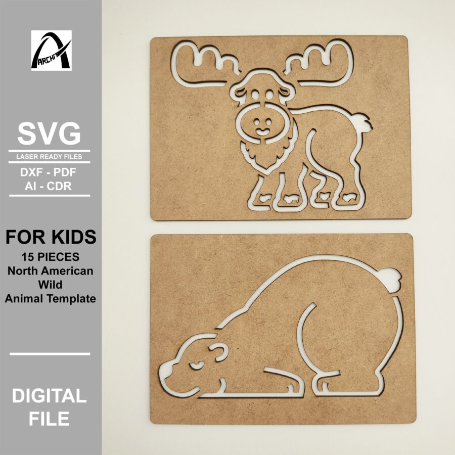 Plantilla Montessori de Animales Salvajes de América del Norte – SVG Digital para Corte Láser y Juguetes de Madera