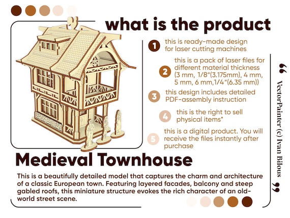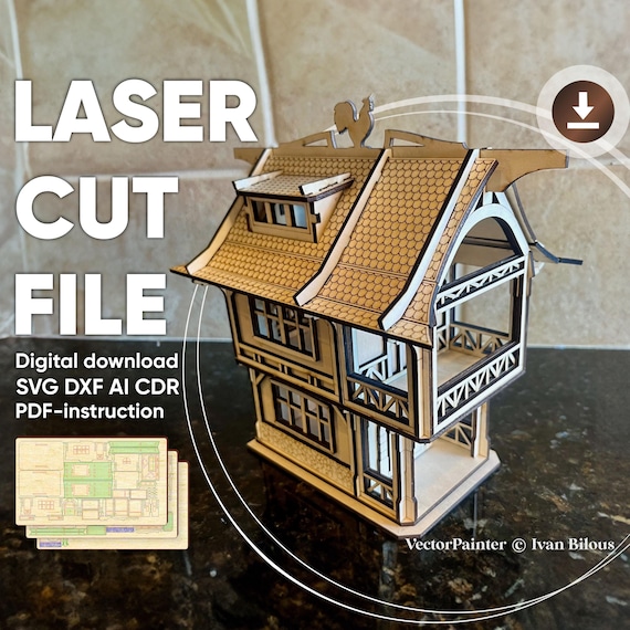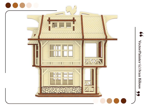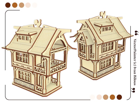 🏰 ¡Construye tu propia casa medieval con nuestra plantilla SVG para corte láser! Este detallado diseño está diseñado para máquinas de corte y te permitirá crear un encantador edificio de madera en miniatura, perfecto para proyectos DIY, dioramas y colecciones de casas de muñecas.