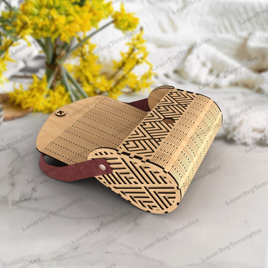 Plantilla SVG para bolso de mano de madera cortado con láser – Compatible con Glowforge y Cricut DXF
