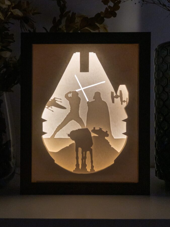 Plantillas de caja de luz DIY Falcon – PDF + SVG + Videotutorial para crear cajas de sombras