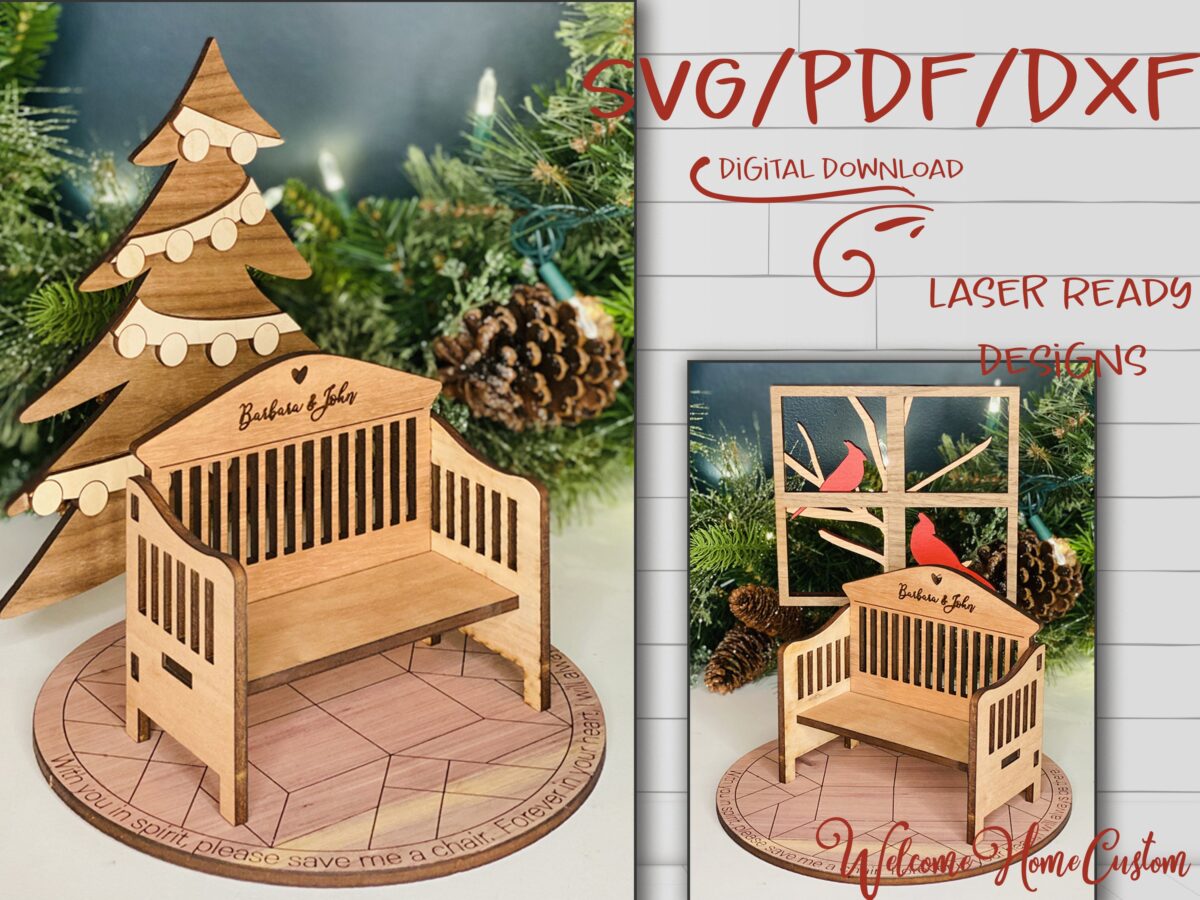 Plantillas de corte láser para Glowforge: Banco con árbol y cardenal – PDF SVG DXF – Decoración única
