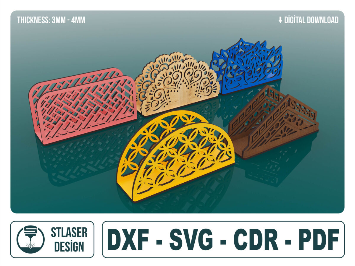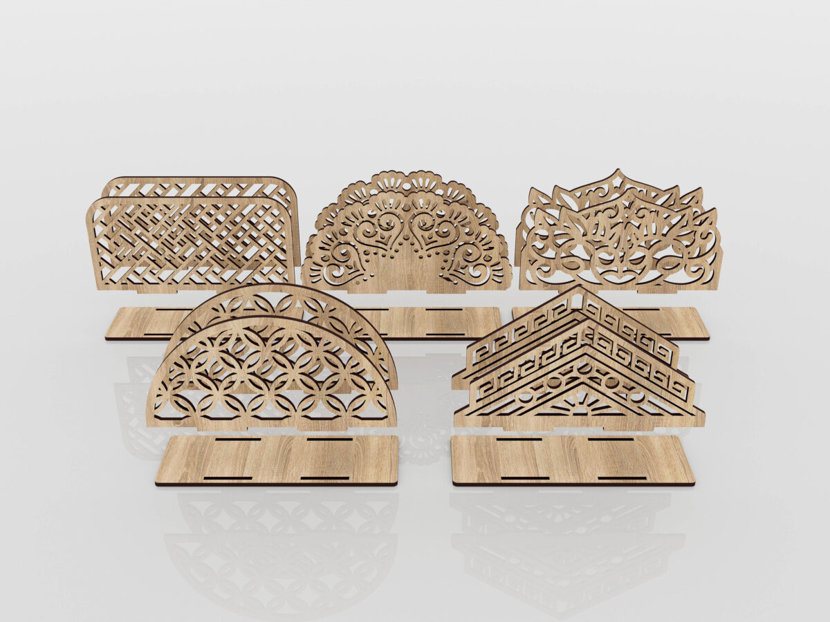 Porta Servilletas Cortados con Láser – 5 Archivos SVG Vectoriales para Madera – Diseño Creativo