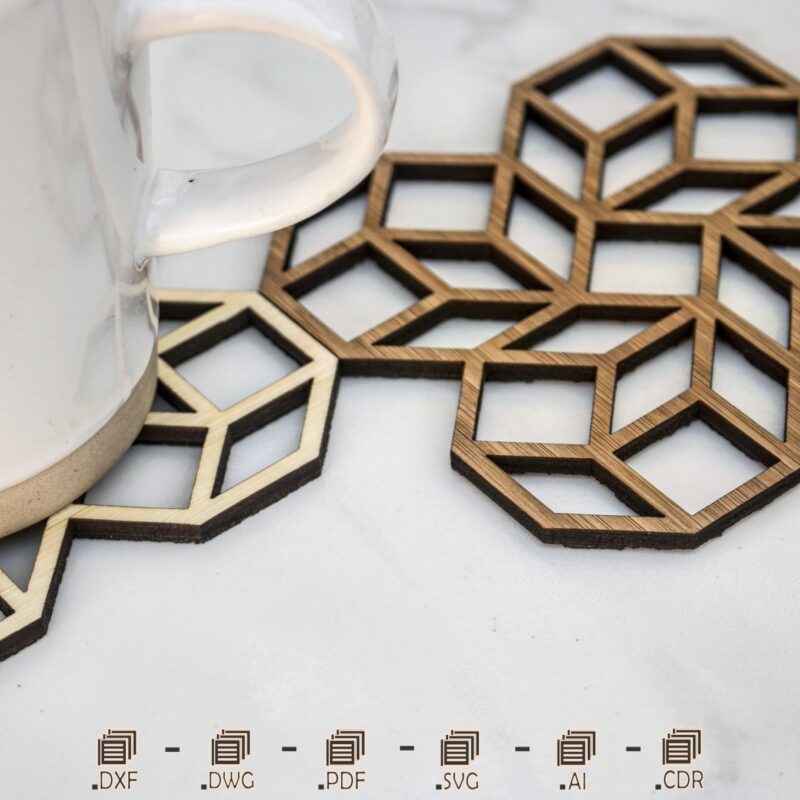 Porta tazas personalizables para corte láser – 26 diseños únicos y creativos