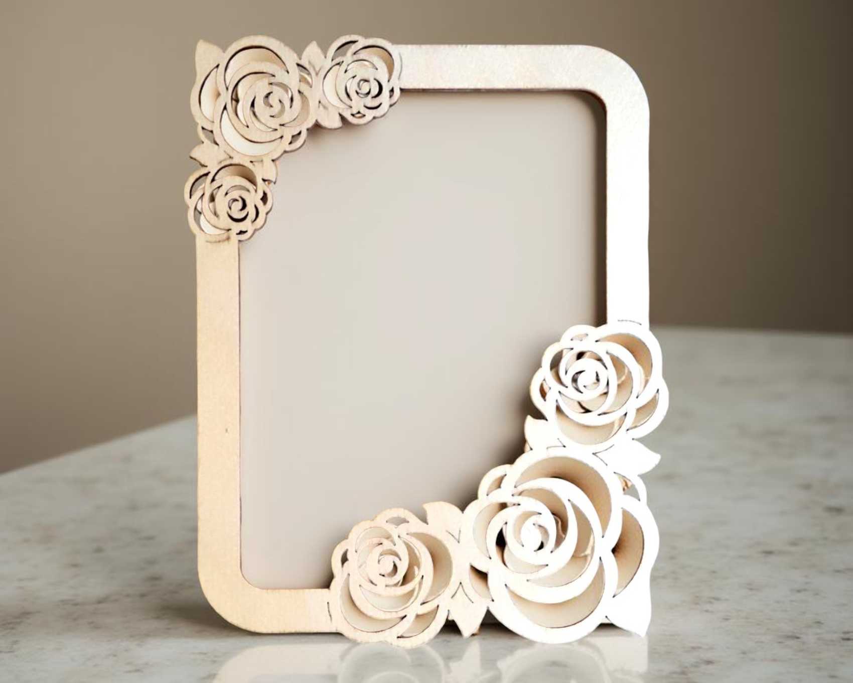 Portafotos con diseño de rosas para corte láser, archivos digitales para MDF