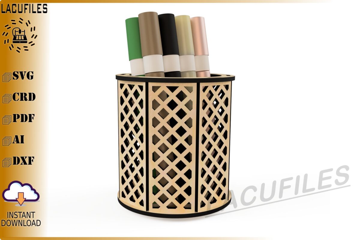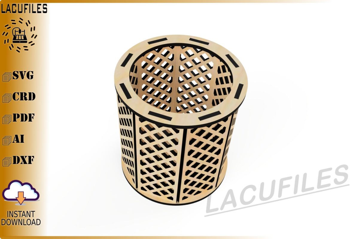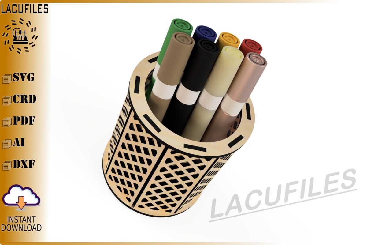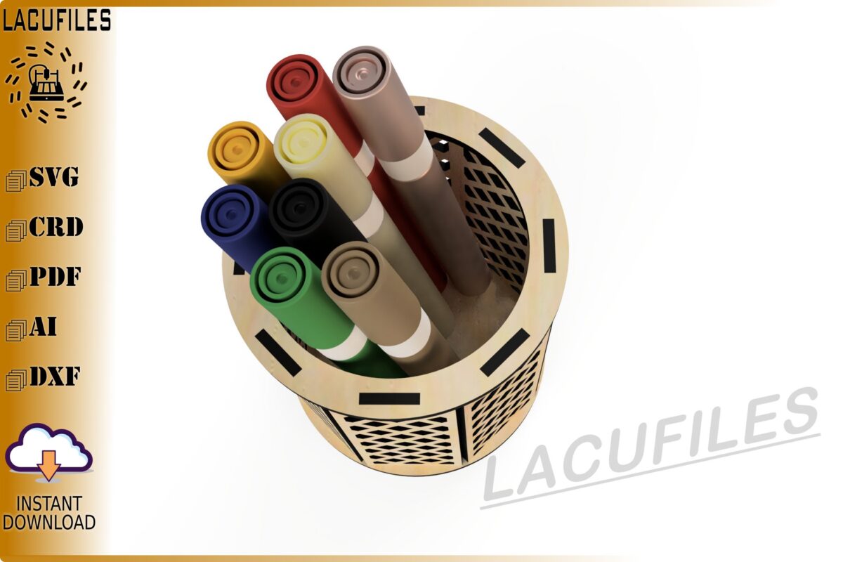 🌟 Organiza tu espacio con estilo gracias a nuestro portalápices de reja diseñado para corte láser CNC. Este elegante organizador es perfecto para mantener en orden tus plumones y lápices, añadiendo un toque decorativo a tu escritorio.