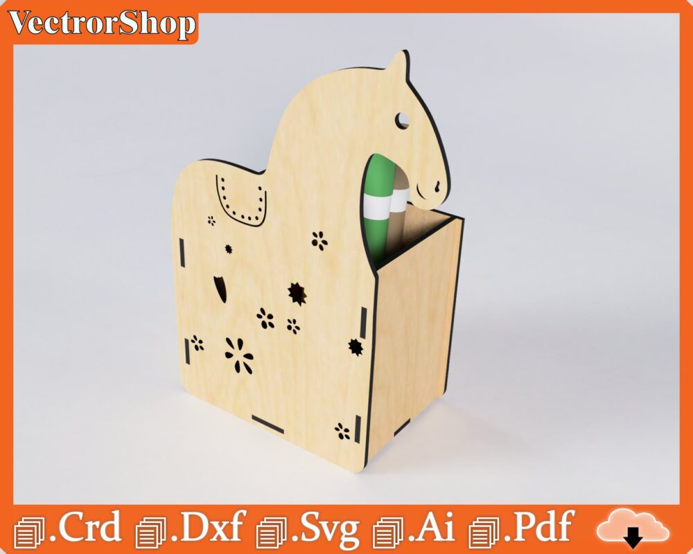 Portalápices Caballo para Corte Láser CNC – Organizador Creativo de Escritorio Personalizado