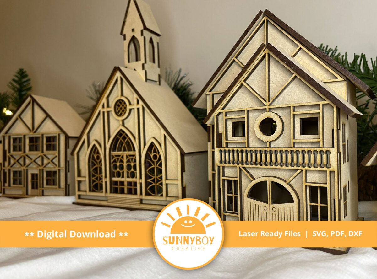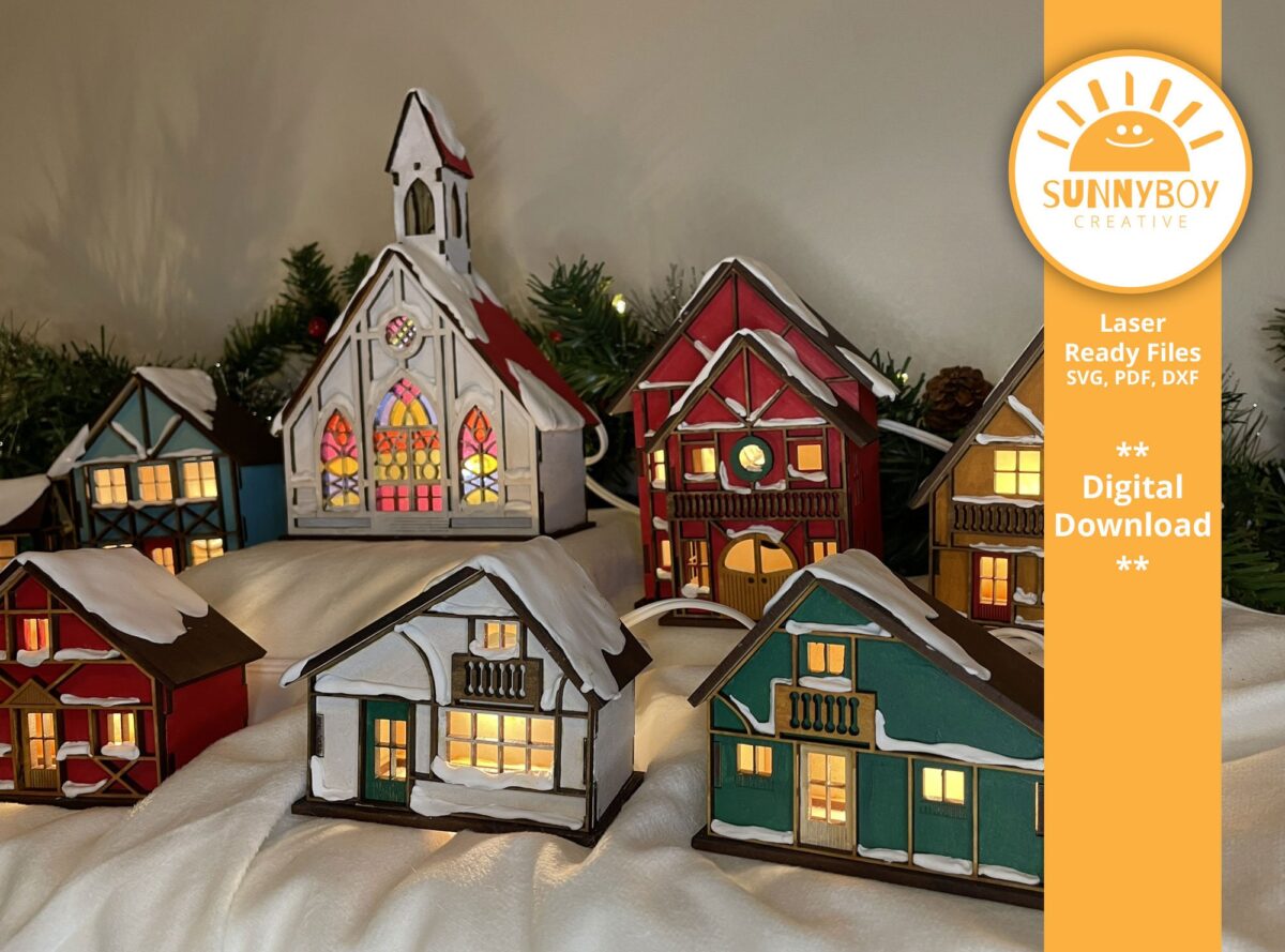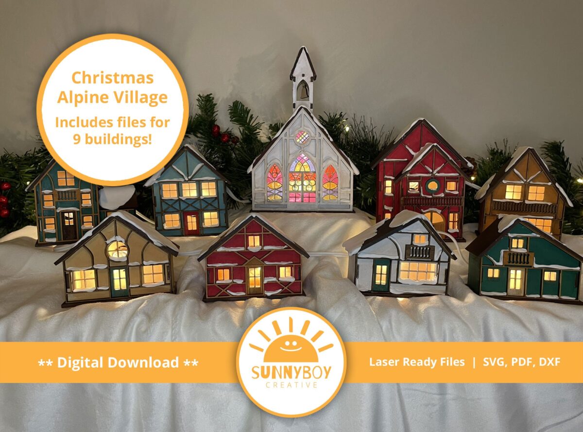 Pueblo Navideño Alpino: 9 Diseños para Corte Láser en SVG, PDF y DXF – Descarga Instantánea
