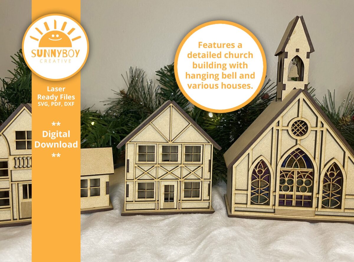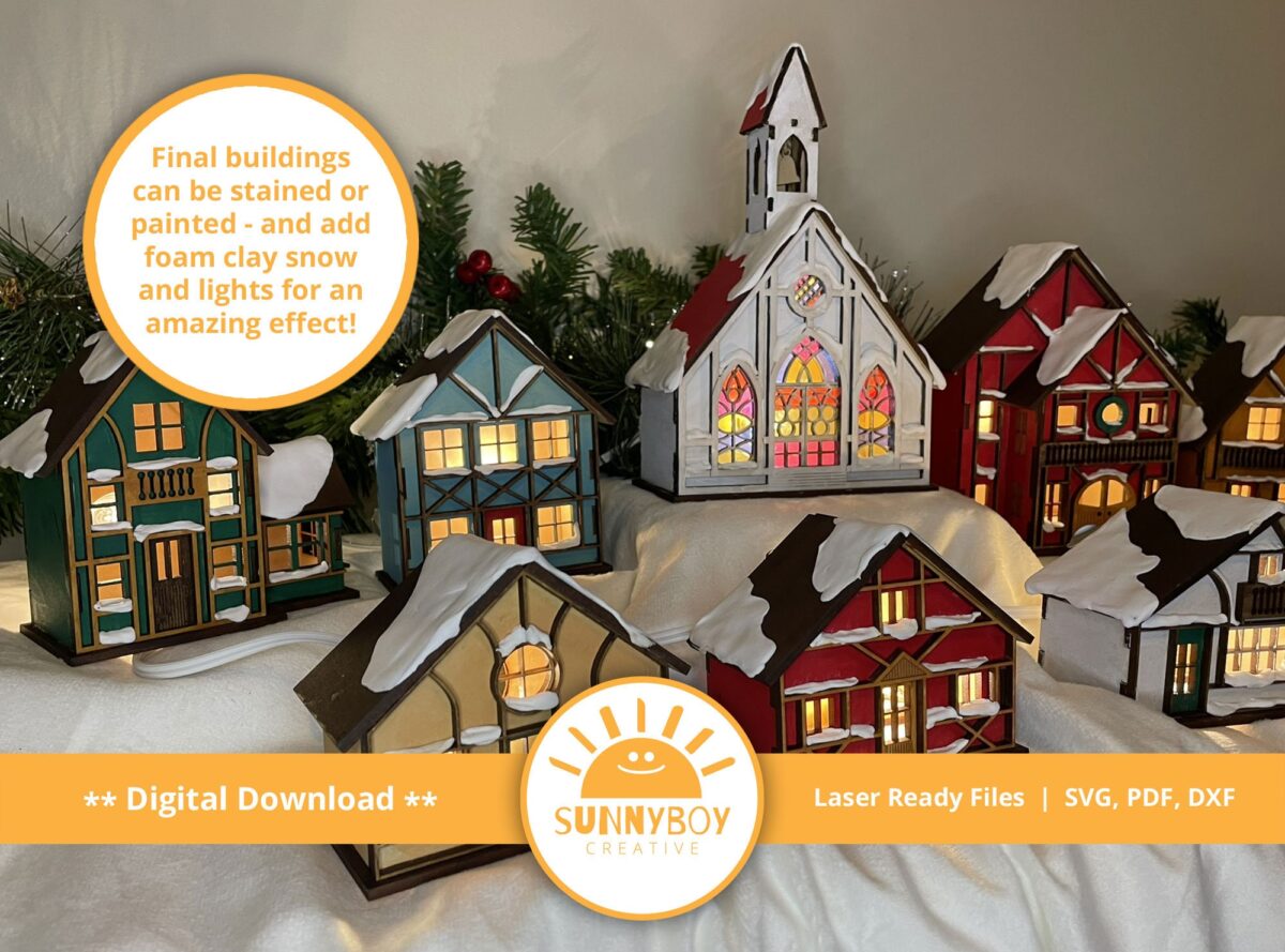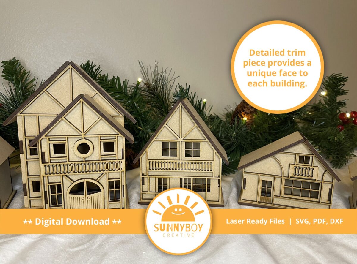 Pueblo Navideño Alpino: 9 Diseños para Corte Láser en SVG, PDF y DXF – Descarga Instantánea