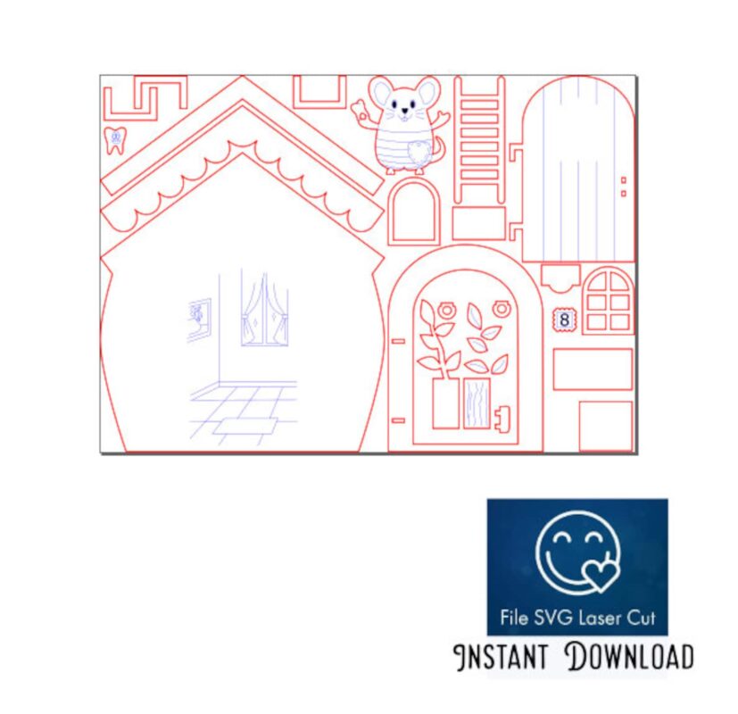 Puerta del Ratón: Archivo SVG Corte Láser para Caja de Dientes de Leche y Primarios