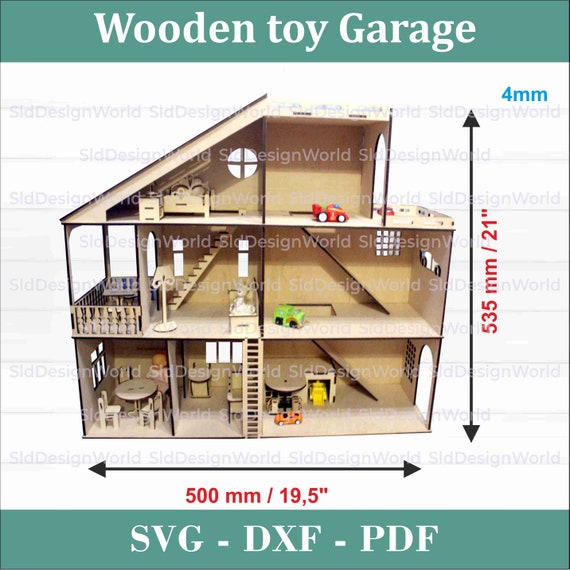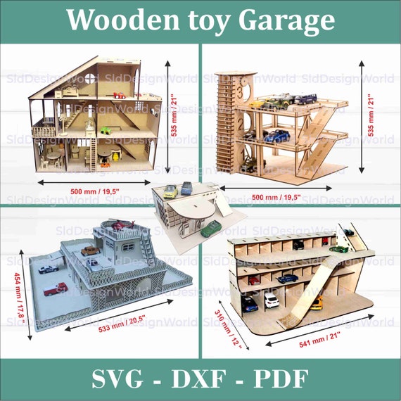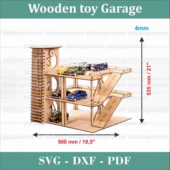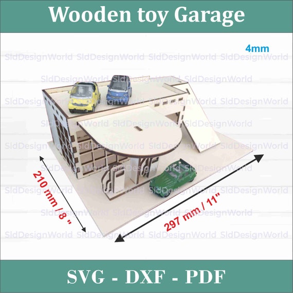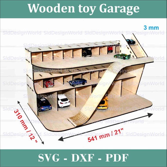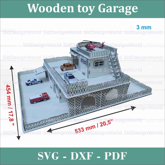 Rampa de salto para garaje de juguete de madera con estacionamiento y helicóptero – Archivos SVG DXF CDR CNC