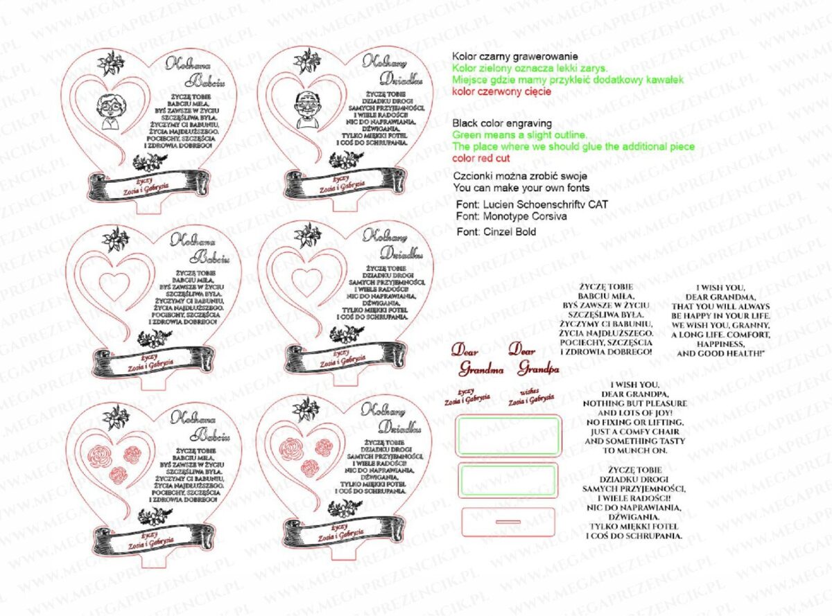 • 6 diseños de estatuillas en forma de corazón, ideales para la abuela y el abuelo.