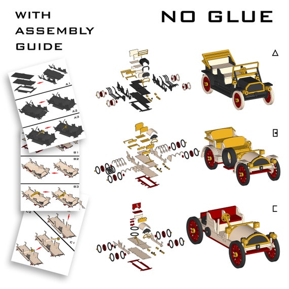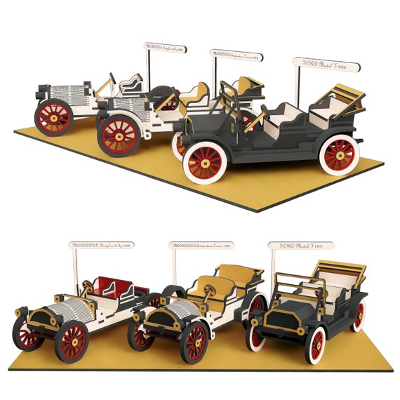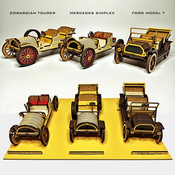 🚗✨ ¡Descubre nuestro sorprendente rompecabezas 3D de coche de madera, diseñado especialmente para aficionados y coleccionistas! Este producto digital incluye planos para tres icónicos modelos: el Mercedes Simplex, el Ford Modelo T y el Mercedes Edwardian Tourer.