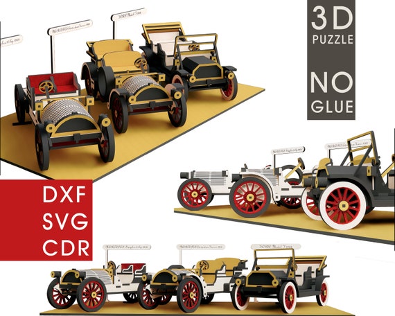 Rompecabezas 3D de coche de madera con corte láser – Planos digitales para aficionados y coleccionistas