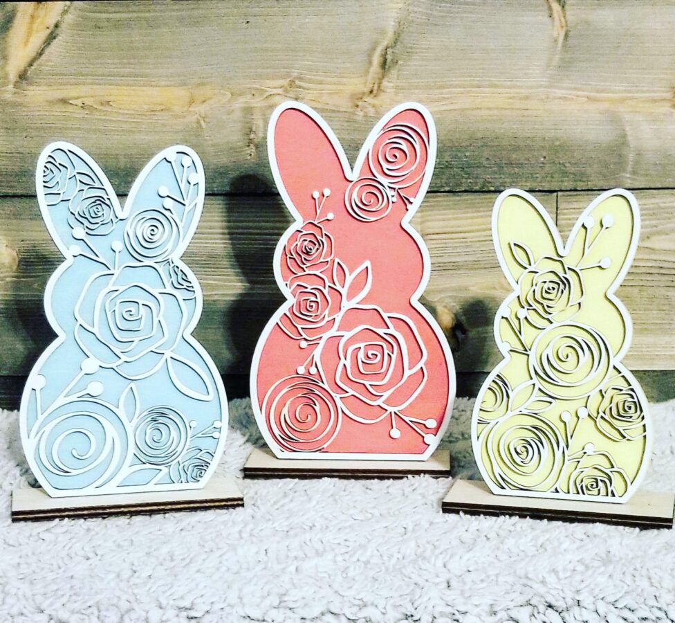 Set de 3 conejos florales SVG para Glowforge – Descarga digital para corte láser