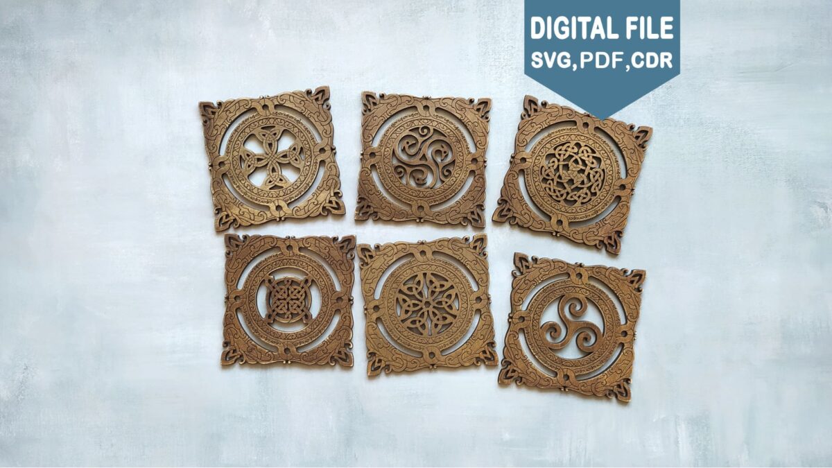 Set de 6 posavasos Celtas para Corte Láser – Archivos SVG, PDF y CDR