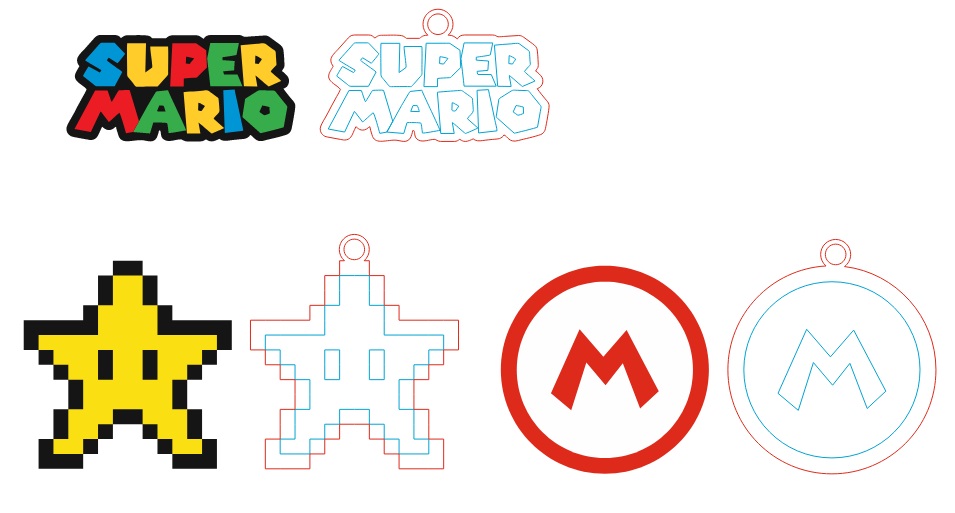 Set de 61 Llaveros de Mario Bros para Corte Láser – Archivos CNC Descargables