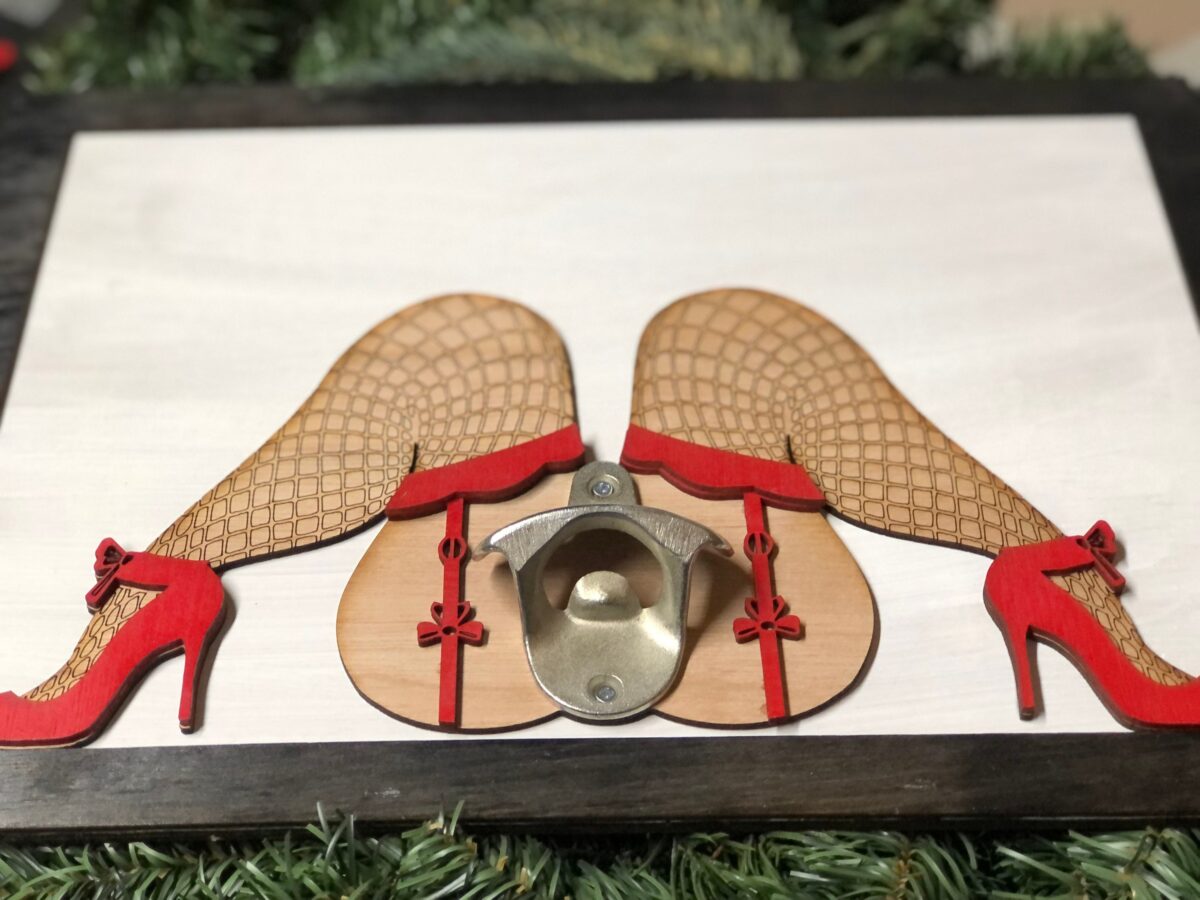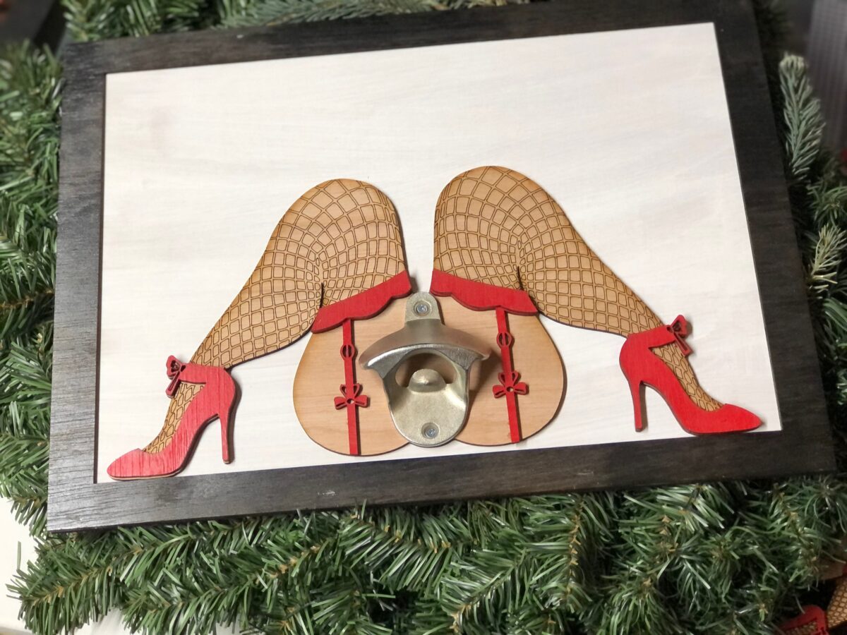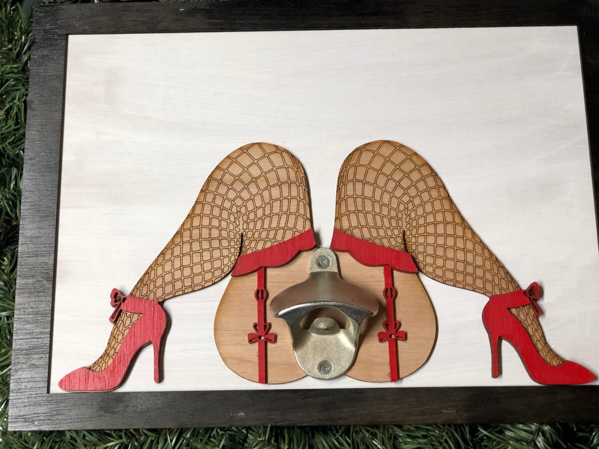 Abridor de botella SVG sexy de mujer voluptuosa con piernas – Archivo digital para corte láser