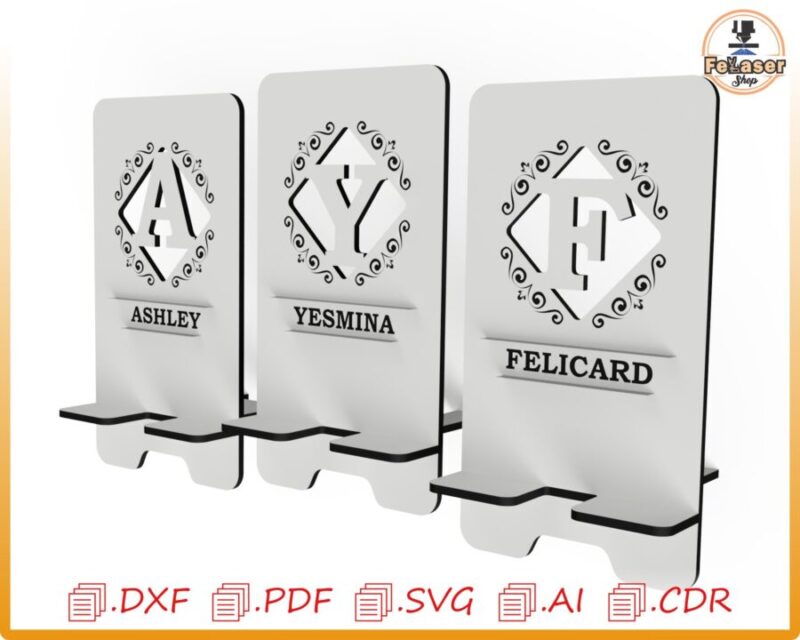 Soporte de Celulares Personalizado A-Z para Corte Láser – Diseño Único y Funcional