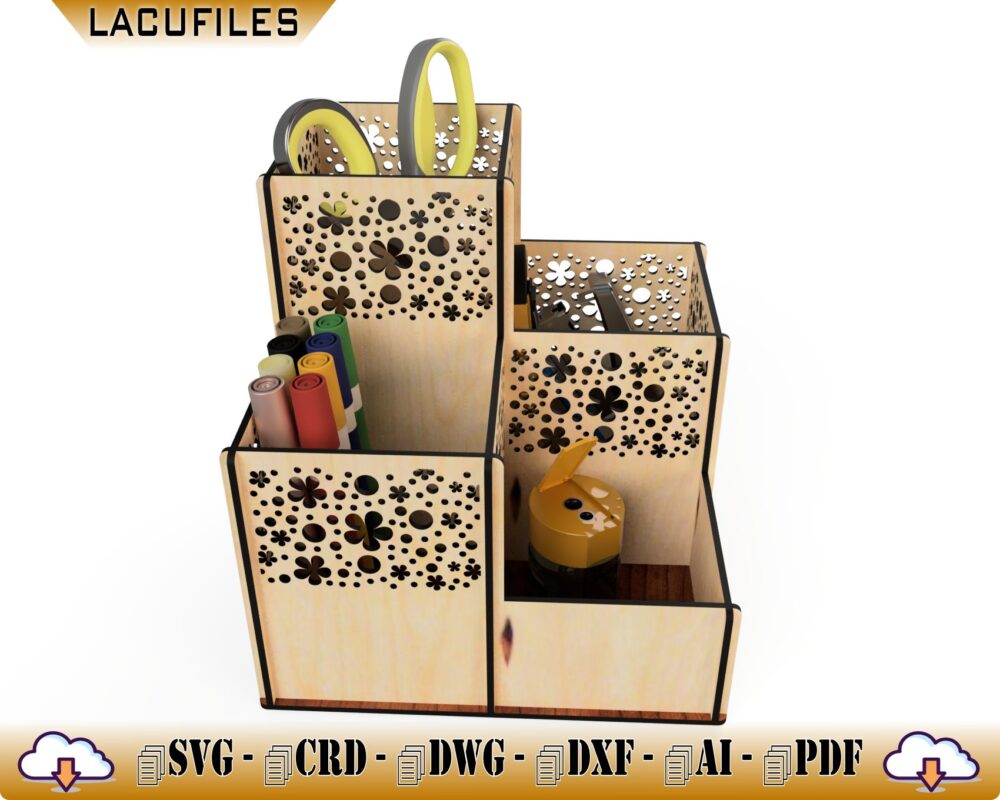🖊️ ¡Organiza tu espacio de trabajo con nuestro exclusivo Organizador de Escritorio para Lápices! Este soporte personalizado de corte láser es la solución perfecta para mantener tus utensilios ordenados y al alcance de la mano.
