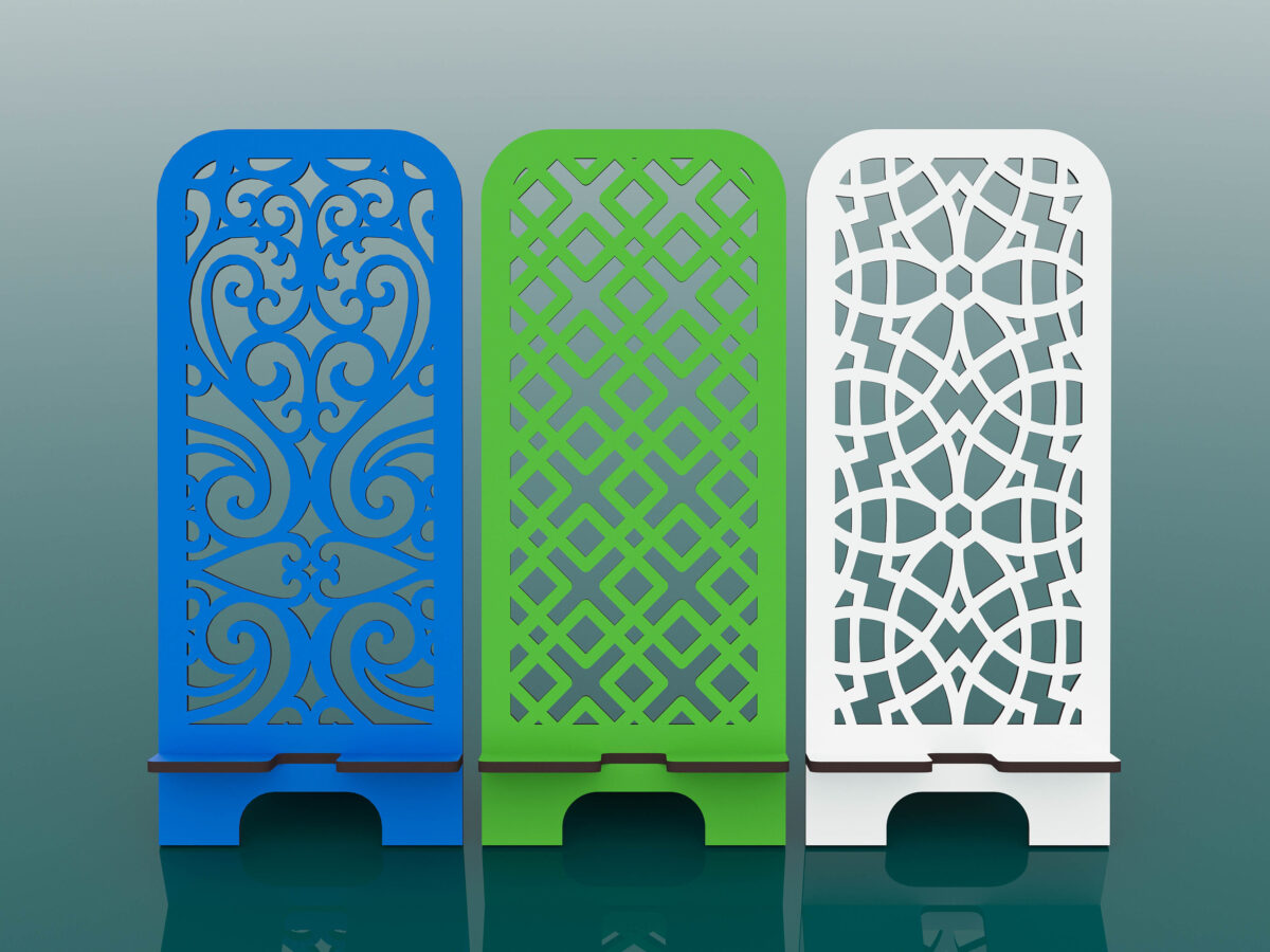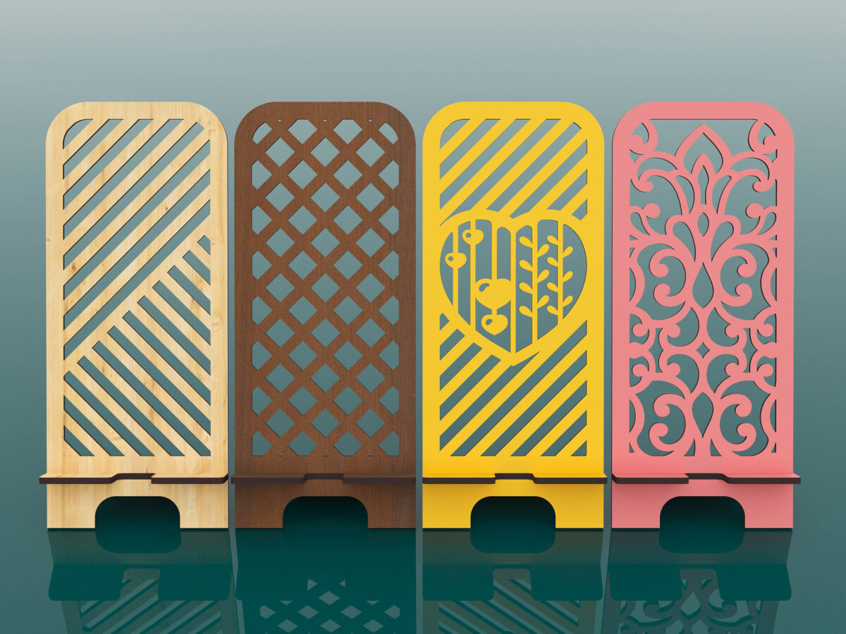 Soporte de Teléfono Cortado con Láser – 7 Archivos SVG Decorativos para Madera