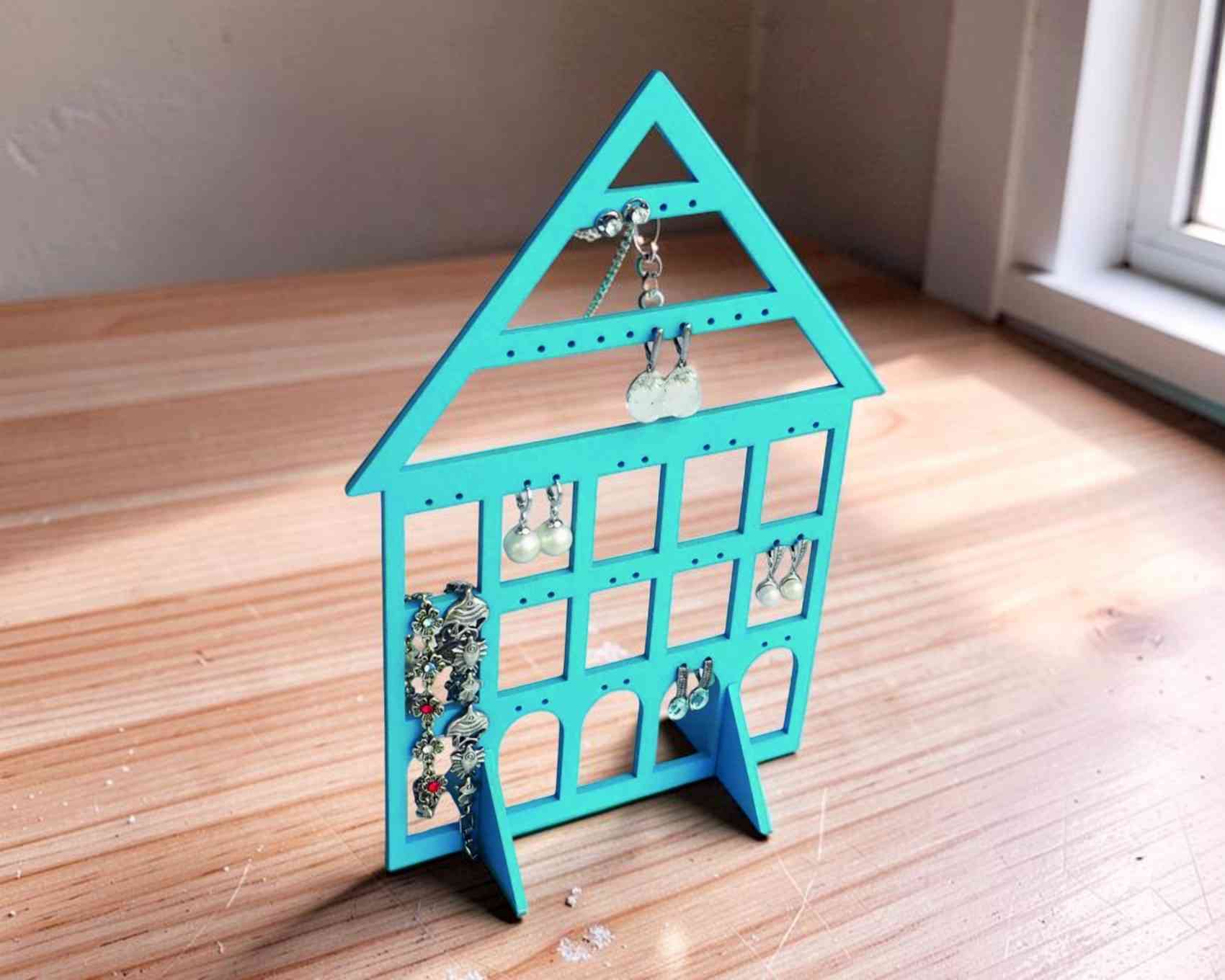 Soporte para pendientes de madera – Expositor de joyas para corte láser (archivo digital)