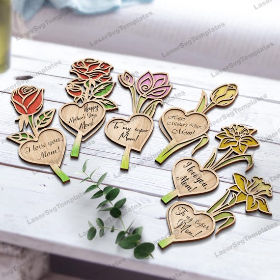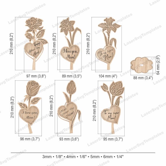 4 valoraciones en Stand Personalizado para Flores – Pack de 6 Archivos SVG y DXF para Corte Láser Glowforge – Día de la Madre