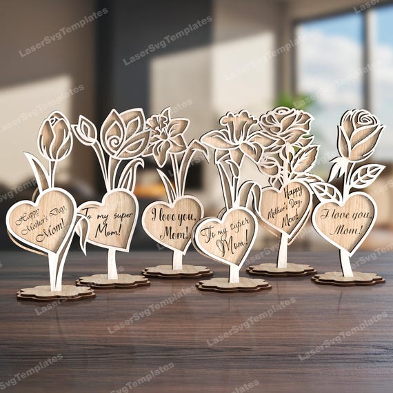 Stand Personalizado para Flores – Pack de 6 Archivos SVG y DXF para Corte Láser Glowforge – Día de la Madre