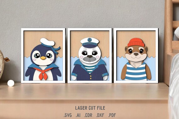 SVG Bundle de Animales Antárticos para Corte Láser – Pingüinos, Focas y Nutrias en Marcos